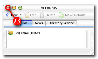 | 13)You should now see your account in the Accounts List (pictured above). When you have finished with this window click the top left button to close the Accounts screen. |