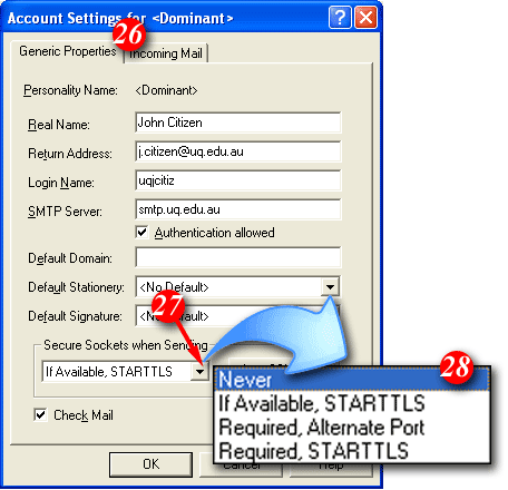 | 8)By default Eudora will enter part of your email address as the username. Delete this information and enter your 'email address' (for example: me@mydomain.com). | ||