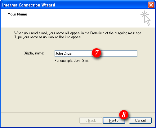 | 7)Enter your name as you would like it to appear in outgoing mail. | |||||