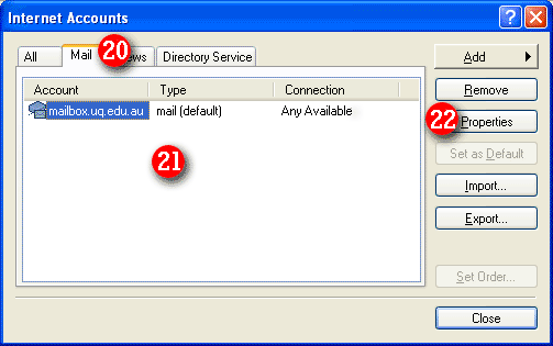 | 4)In the middle of the screen you will see a list of accounts that have already been setup in Outlook Express. | |||||