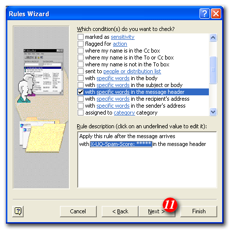 | 7)Put a tick in the 'with specific words in the message header' checkbox |